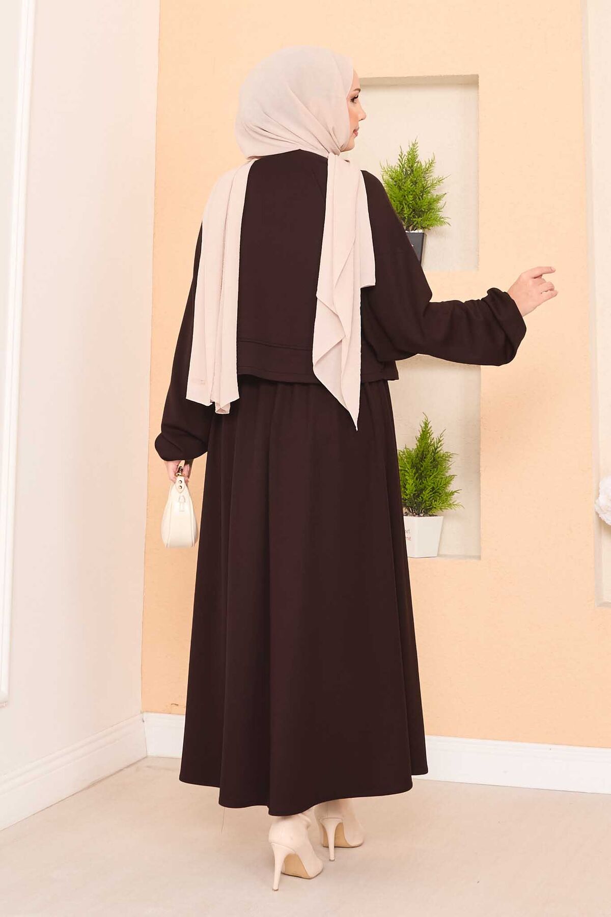 Yarasa Kol Crop Etek Tesettür Takım Kahve