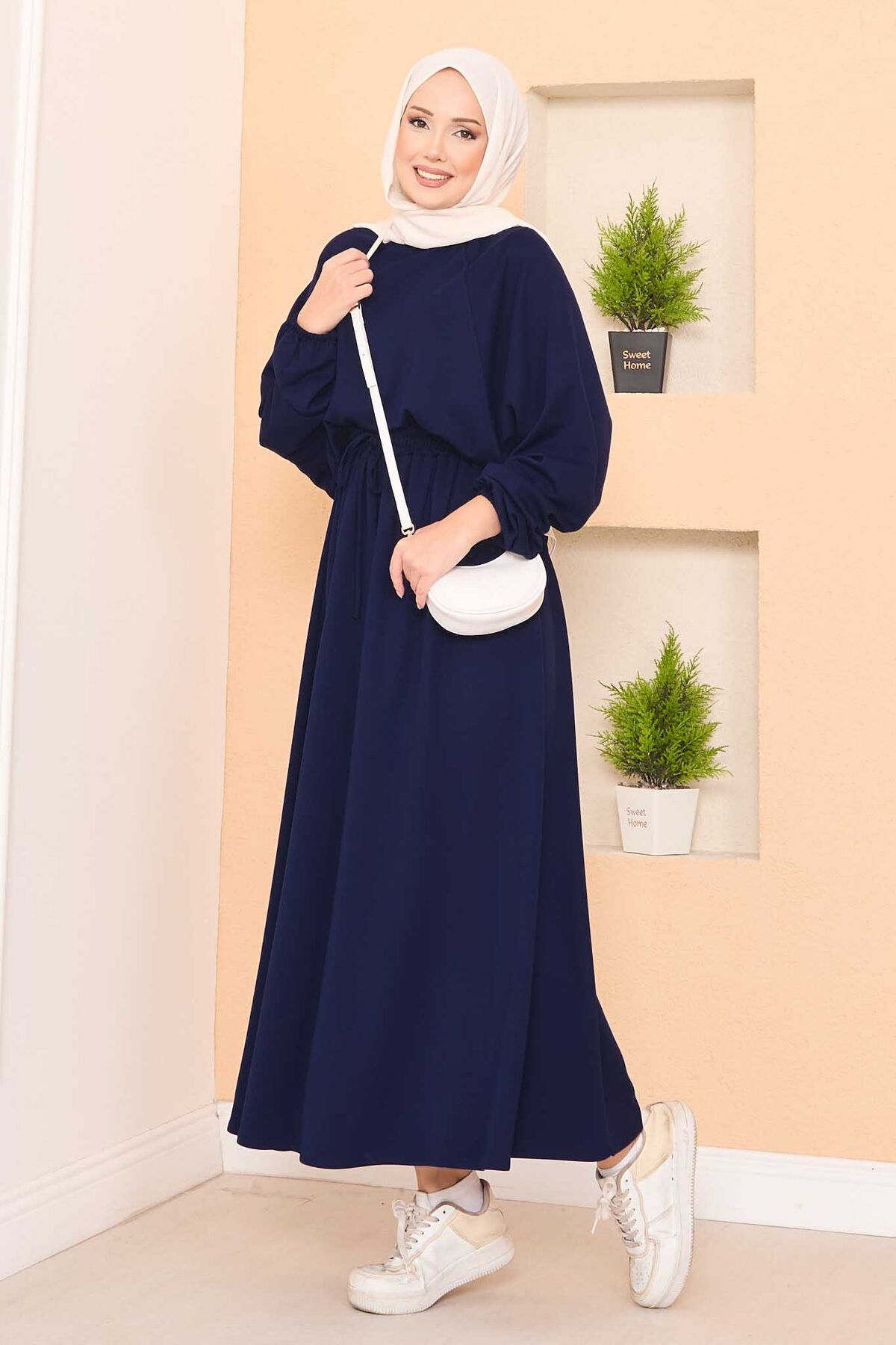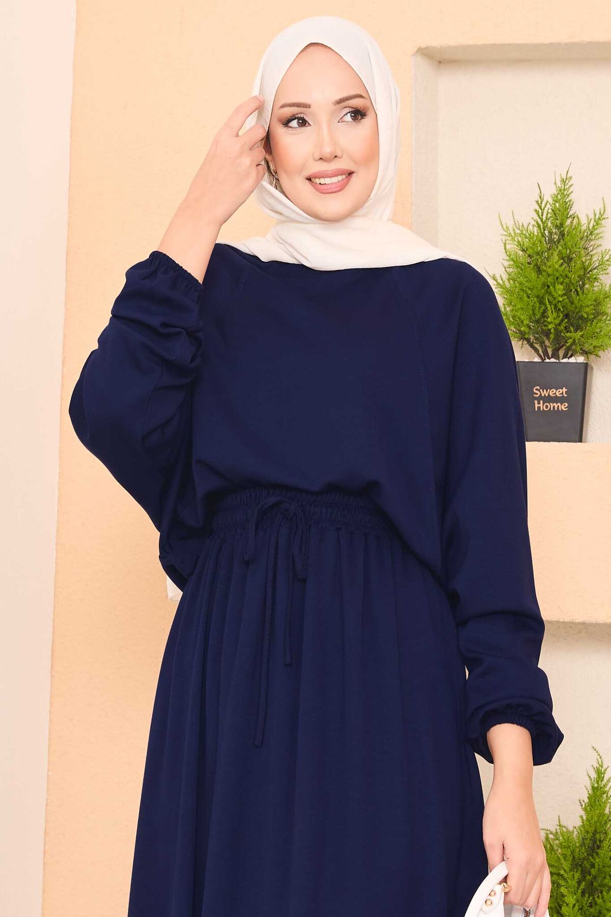 Yarasa Kol Crop Etek Tesettür Takım Lacivert
