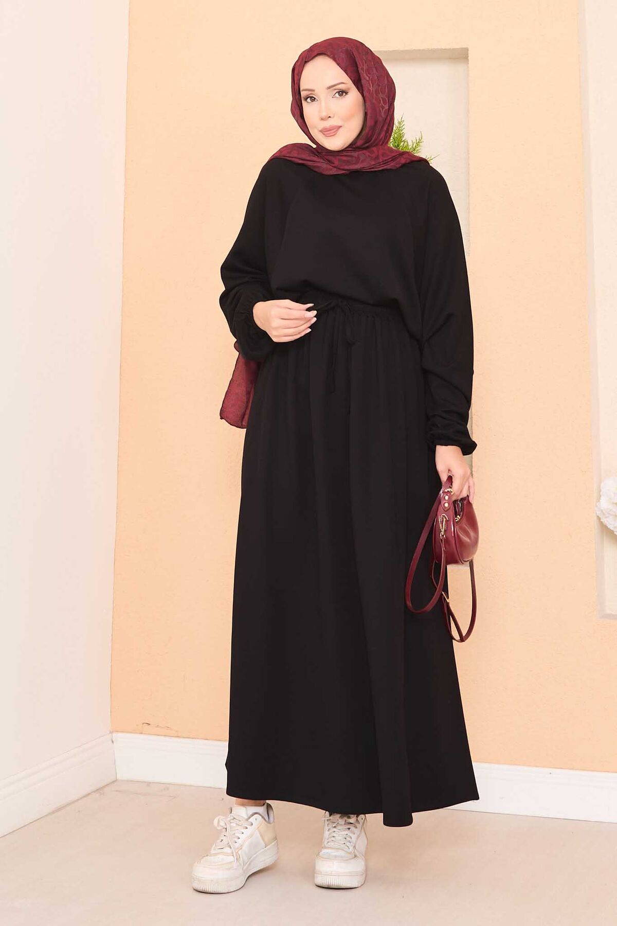 Yarasa Kol Crop Etek Tesettür Takım Siyah