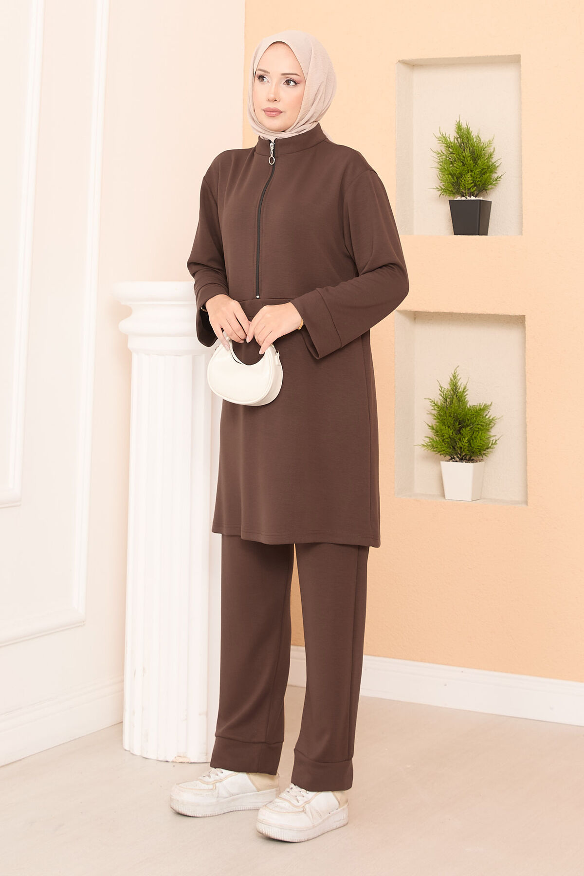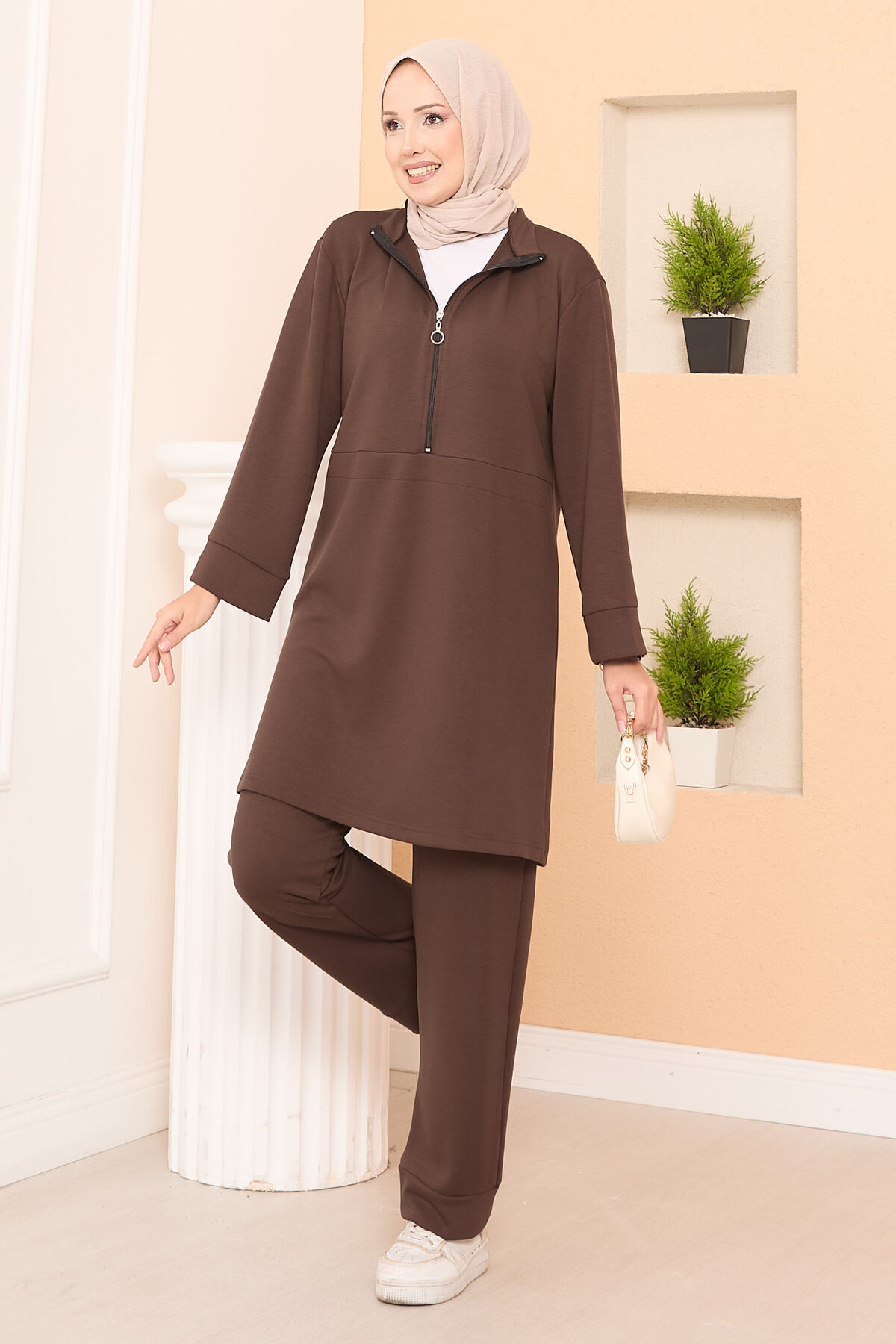 Yarım Fermuarlı İkili Oyşo Takım Kahve