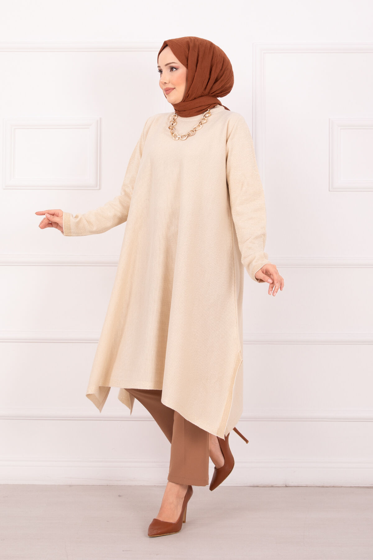 Yırtmaç Detaylı Simli Mevlana Triko Tunik Krem Yorumları