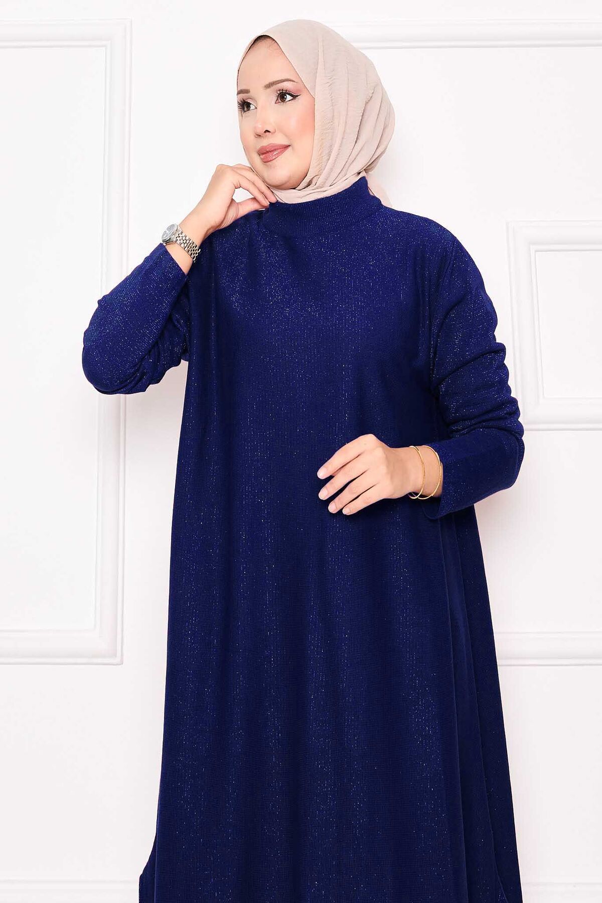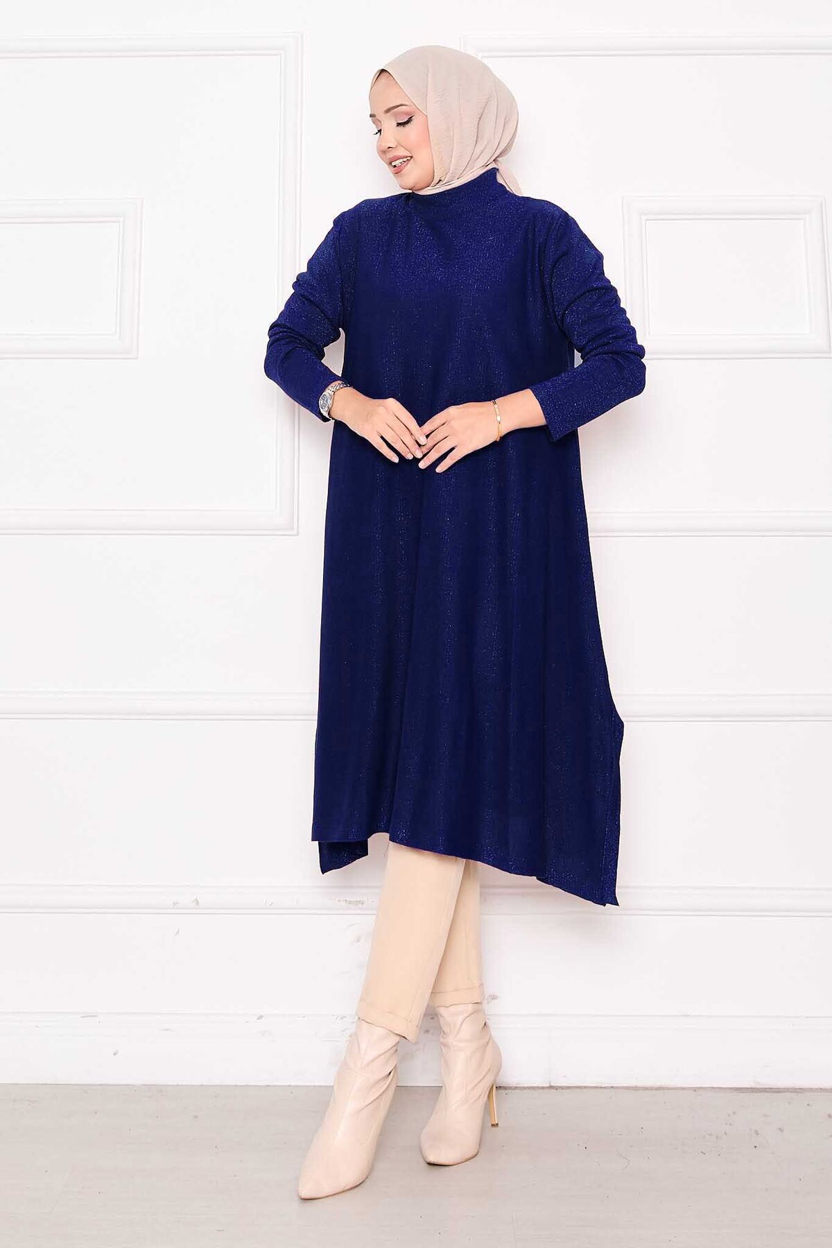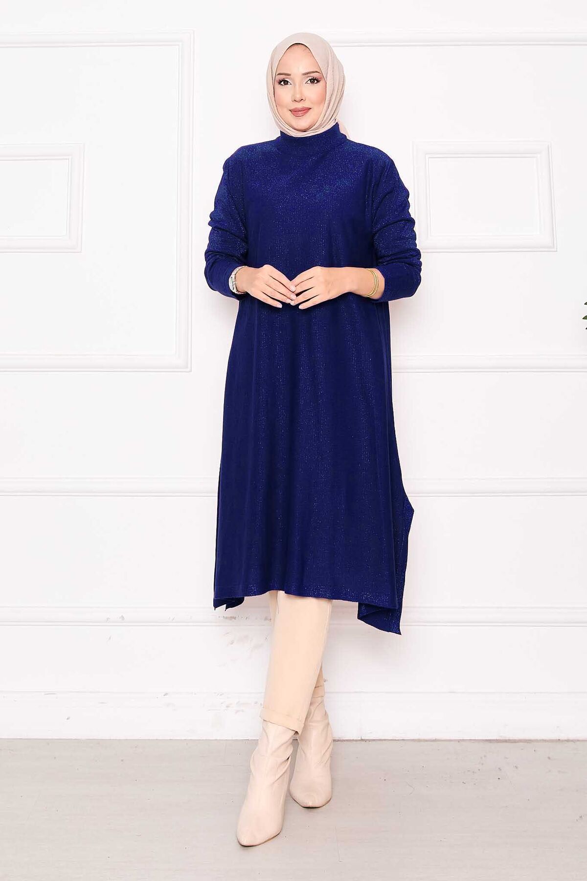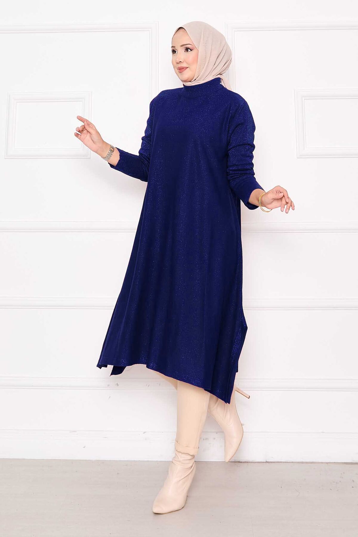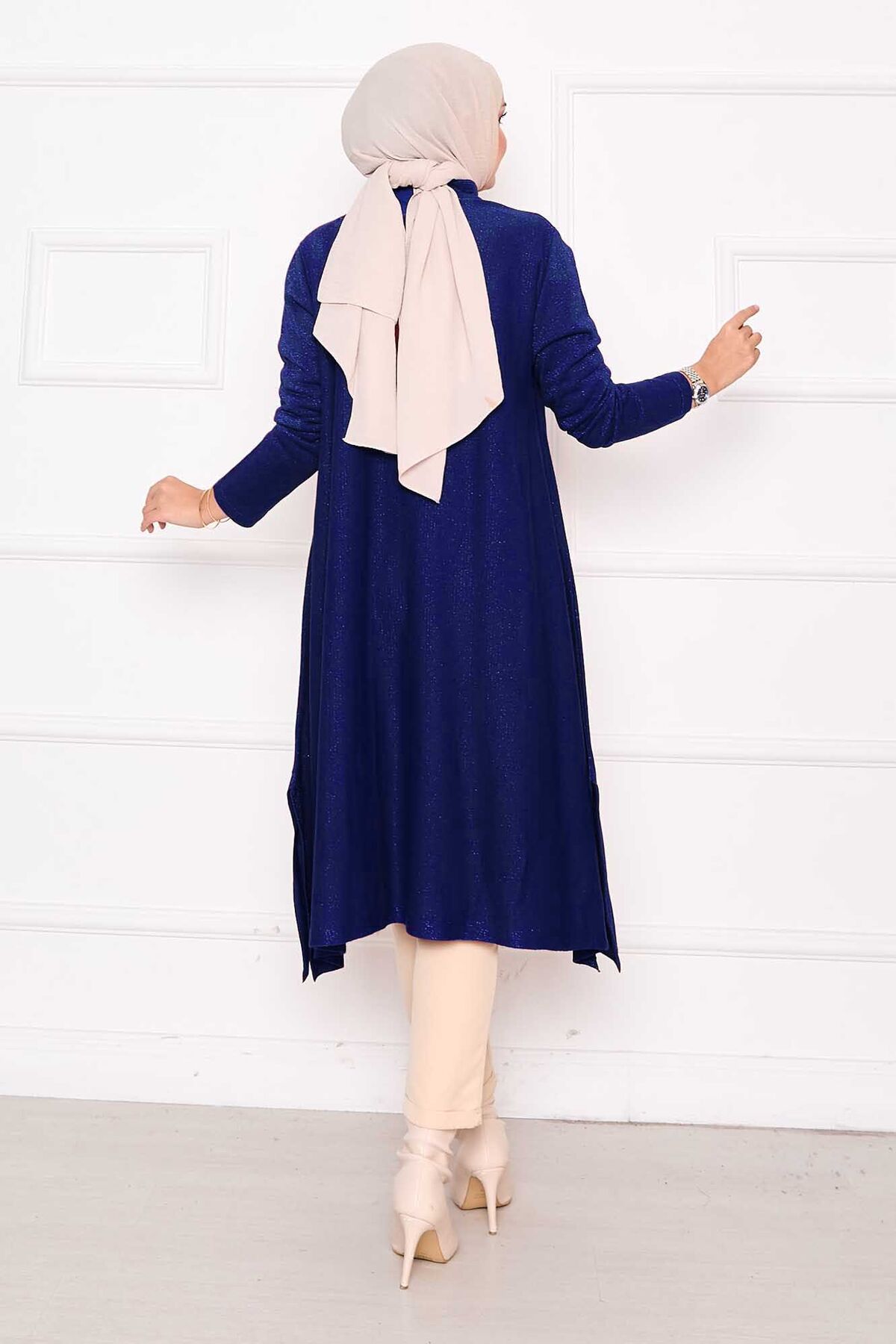 Yırtmaç Detaylı Simli Mevlana Triko Tunik Saks