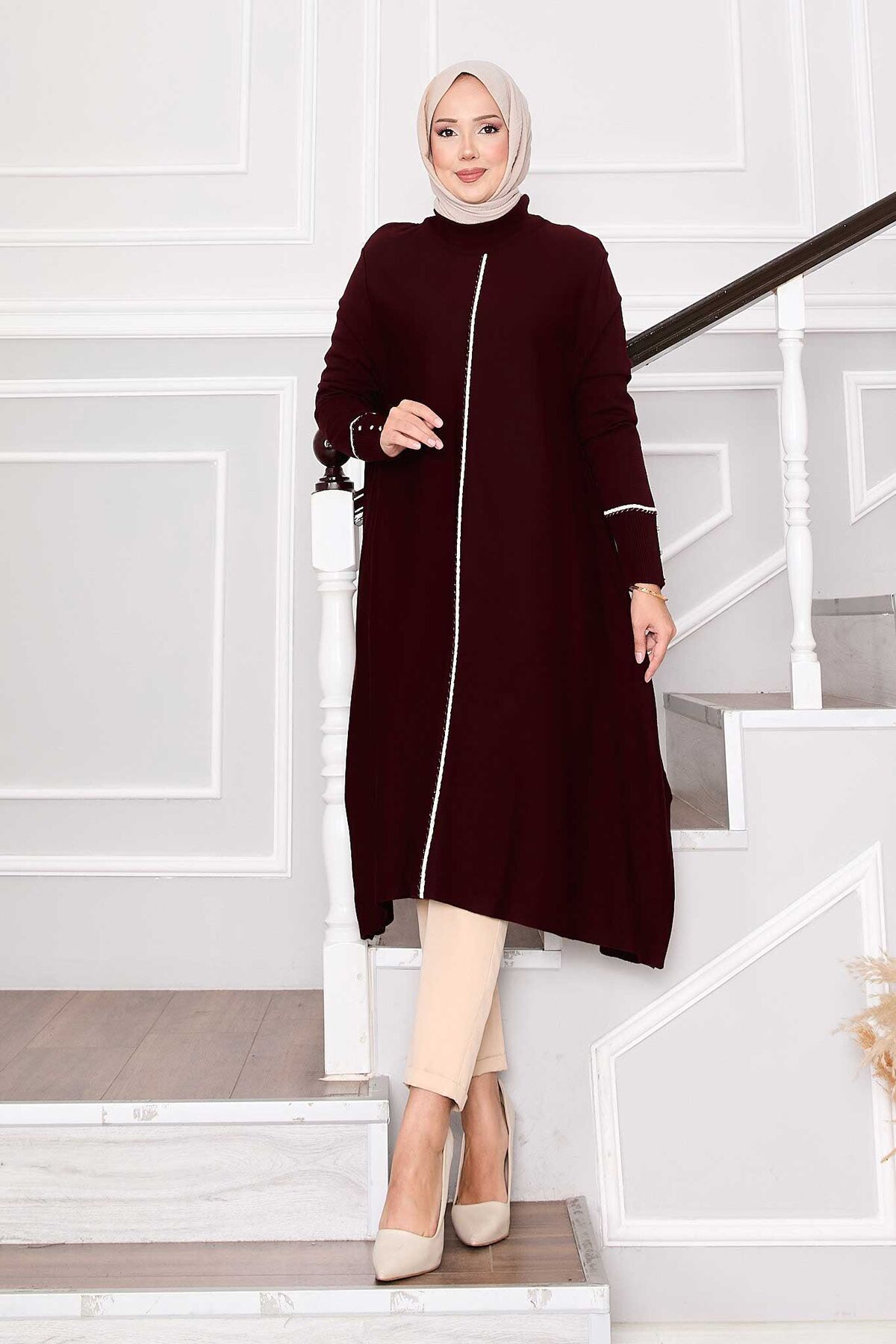 Zarif Sim Şeritli Mevlana Triko Tunik Bordo